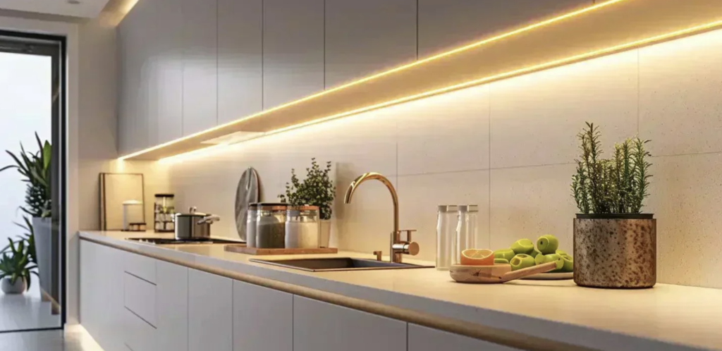 Focused lighting under cabinets to illuminate preparation areas.