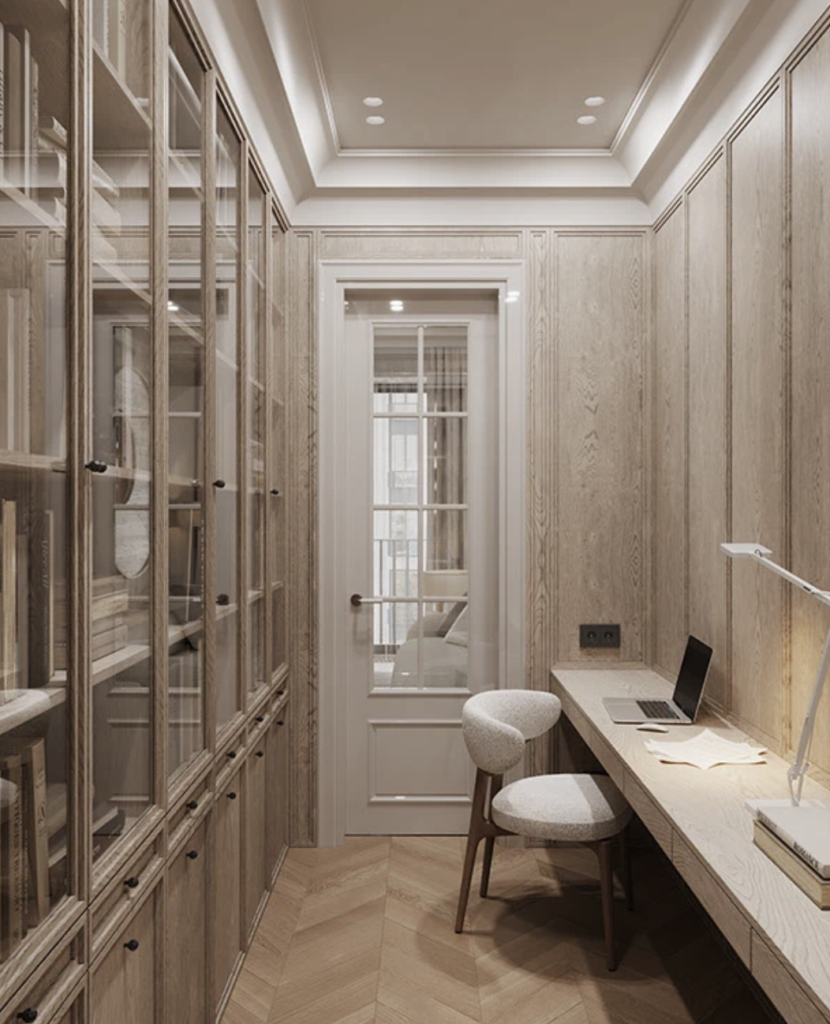 A thoughtfully designed workspace that blends warmth, openness, and functionality. Crafted to support focus, collaboration, and comfort through refined materials and efficient spatial planning.