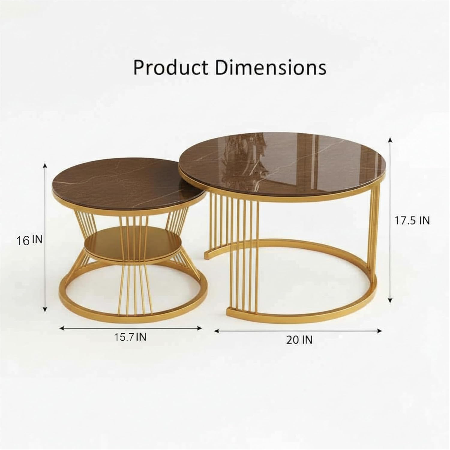 • Nesting Table – This modern and fashion nesting table is composed of a small and large round coffee table.The calibre size of round table is 20″and other one is 15.75″.You can combine or use this coffee table separately according to your needs