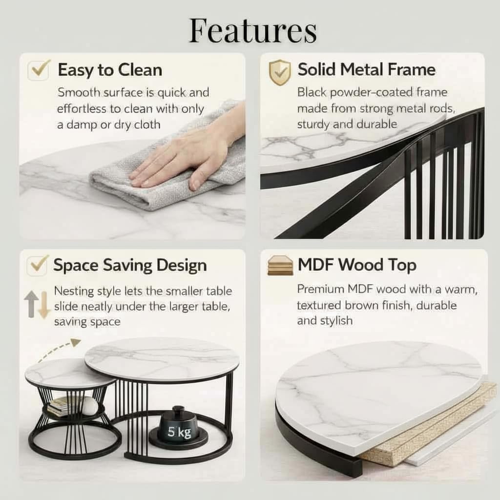 • High Quality & Durable Material – The top of nesting coffee table is made of high density composite panels to prevent scratches and water resistance.The coffee table legs are made of strong metal material,which provides high stability and durability