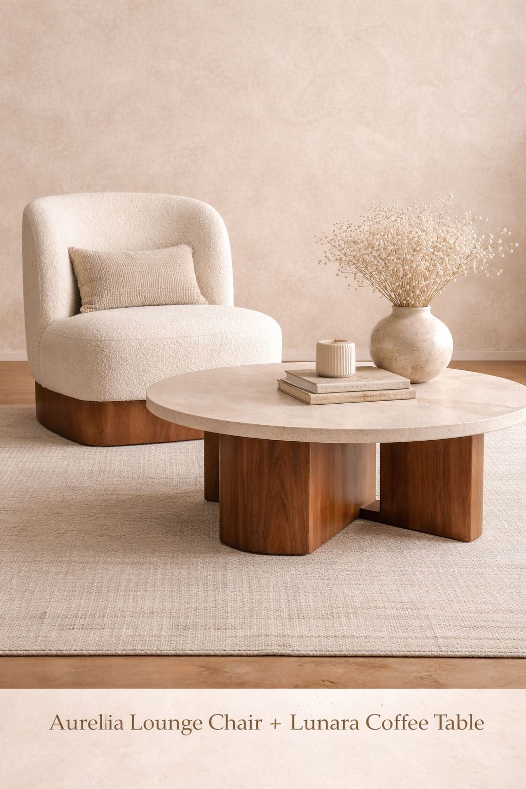 This set includes the Aurelia Lounge Chair and Lunara Coffee Table, carefully paired to complement each other in both form and function. With soft textures, warm wood finishes, and a modern minimalist aesthetic, this combination reflects Studio VIII’s signature design language.